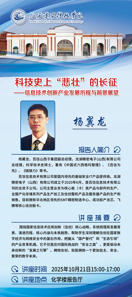 讲座题目:科技史上“悲壮”的长征——信息技术创新产业发展历程与前景展望(报告人:百信山西子集团副总经理杨翼龙)